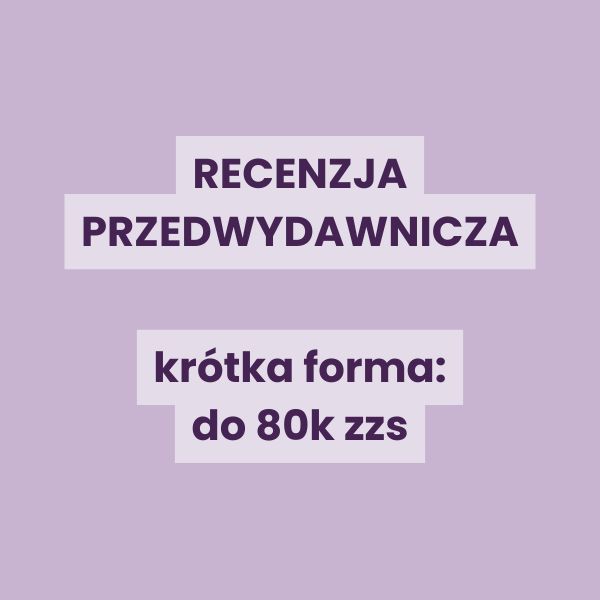 Recenzję przygotowuję osobiście – pracuję sama, nie podzlecam. Mam wykształcenie kierunkowe (polonistyka, kreatywne pisanie i edytorstwo), blisko 200 redakcji i korekt za sobą i ponad 150 autorów, którzy skorzystali z mojego wsparcia. Współpracowałam też jako beta-readerka z wydawnictwami tradycyjnymi, więc wiem, czego oczekują profesjonaliści.
